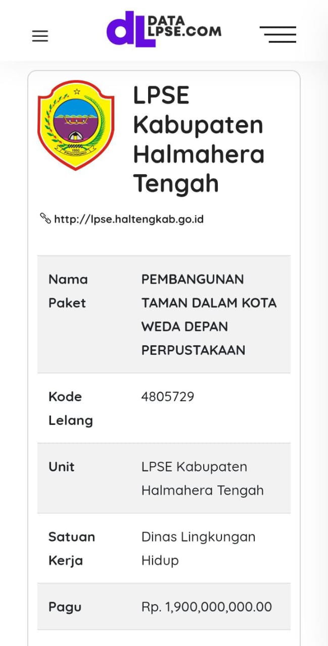 DETIKTV.CO.ID, HALTENG —Proyek pembangunan Taman Dalam Kota Weda di Kabupaten Halmahera Tengah (Halteng) yang menelan anggaran pendapatan belanja daerah (APBD) tahun 2024 sebesar Rp 1,9 miliar kini tengah disorot.